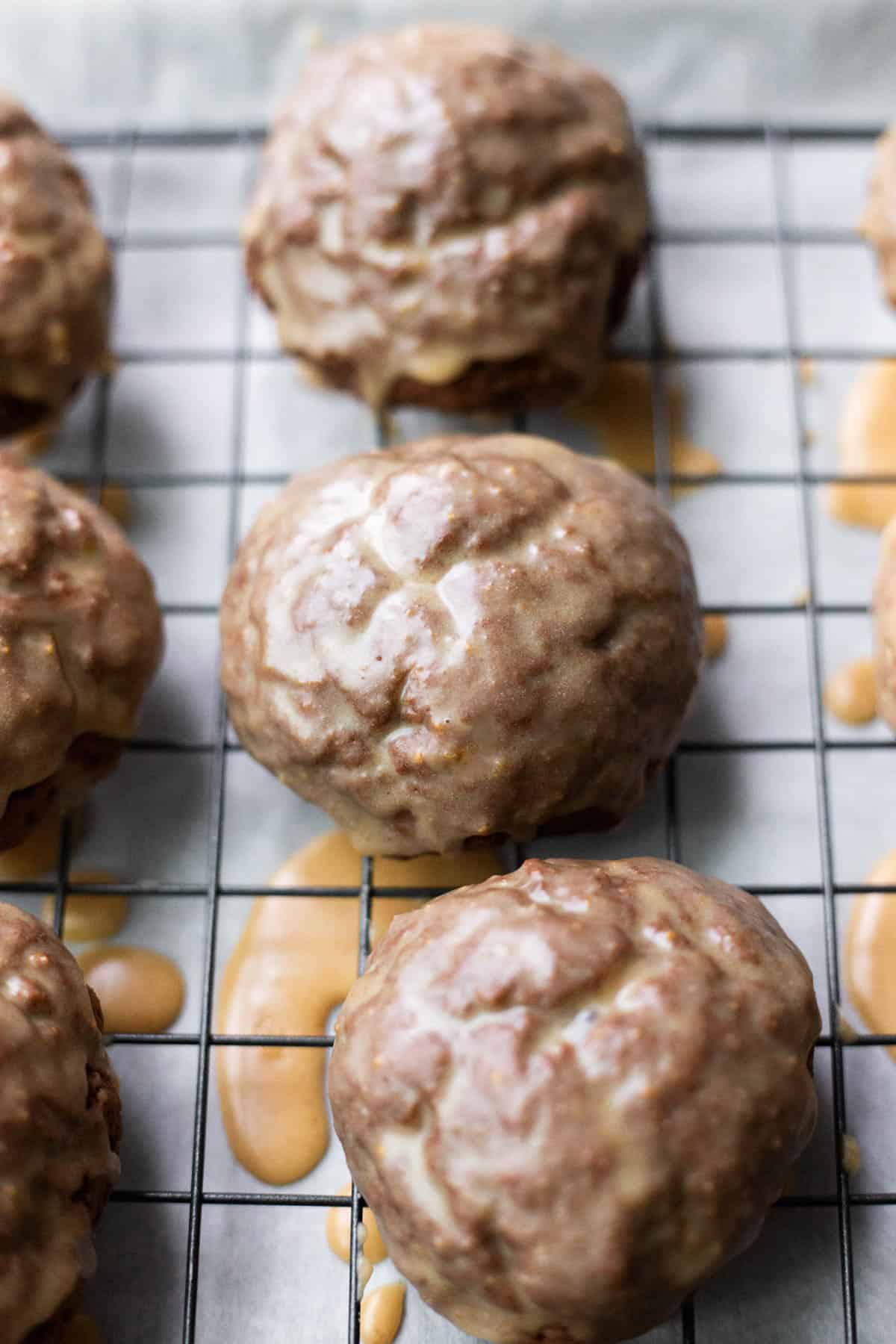 - Dunk the tops of the cookies in the glaze, swirling so the entire top is covered. Place the cookies back on the cooling rack so that the glaze can drip down. Allow to set up at room temperature or pop them in the fridge for quicker setting.
